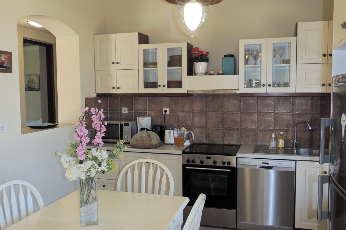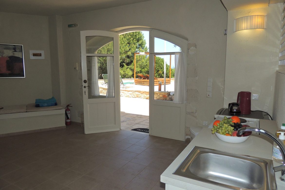 Η βίλα, η οποία μπορεί να φιλοξενήσει μέχρι 10 άτομα, αποτελείται από ενιαία κουζίνα και καθιστικό, 3 υπνοδωμάτια, 3 μπάνια, μία μεγάλη εξωτερική επιπλωμένη βεράντα. Ένας ανεξάρτητος ξενώνας βρίσκεται δίπλα στην πισίνα. Στον ξενώνα φιλοξενούνται έως 4 άτομα και διαθέτει μικρή κουζίνα και μπάνιο. Επίσης στο χώρο της βίλλας υπάρχει χτισμένο με πέτρα μπάρμπεκιου και φυσικά μία υπέροχη πισίνα υπερχείλισης.